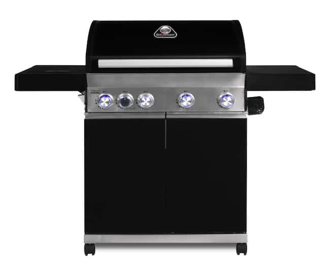הגריל מאובזר בכירת צד לטיגון ובישול, 4 גלגלים עם מעצורים, מכסה עם בידוד כפול, תאורת לד לכפתורים, רשת עליונה לחימום והפשרה, ארון אחסון ופותחן בקבוקים.