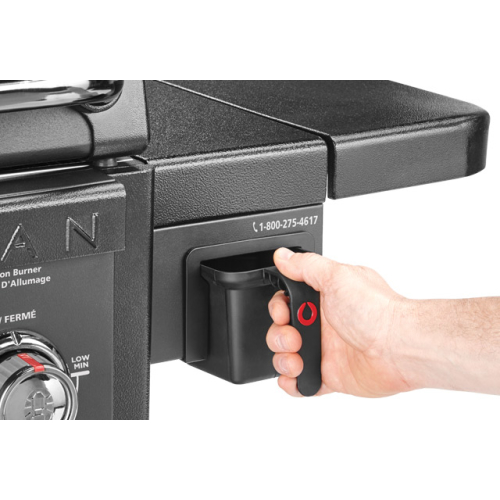לגריל איסוף שומנים קדמי הממוקם בצורה נוחה בתוך מדף הגריל .