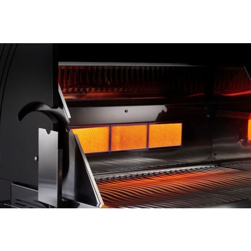 שלושה מבערי נירוסטה 304 עוצמתיים איכותיים במיוחד לצידם מבער אינפרא אדום פנימי עוצמתי במיוחד המגיע ל500 מעלות תוך חצי דקה!, המוגנים ע”י מפזרי חום מנירוסטה איכותית אשר מעבר להגנתם על המבערים מפזרים חום בצורה אופטימלית ושומרים על לחות הבשר.