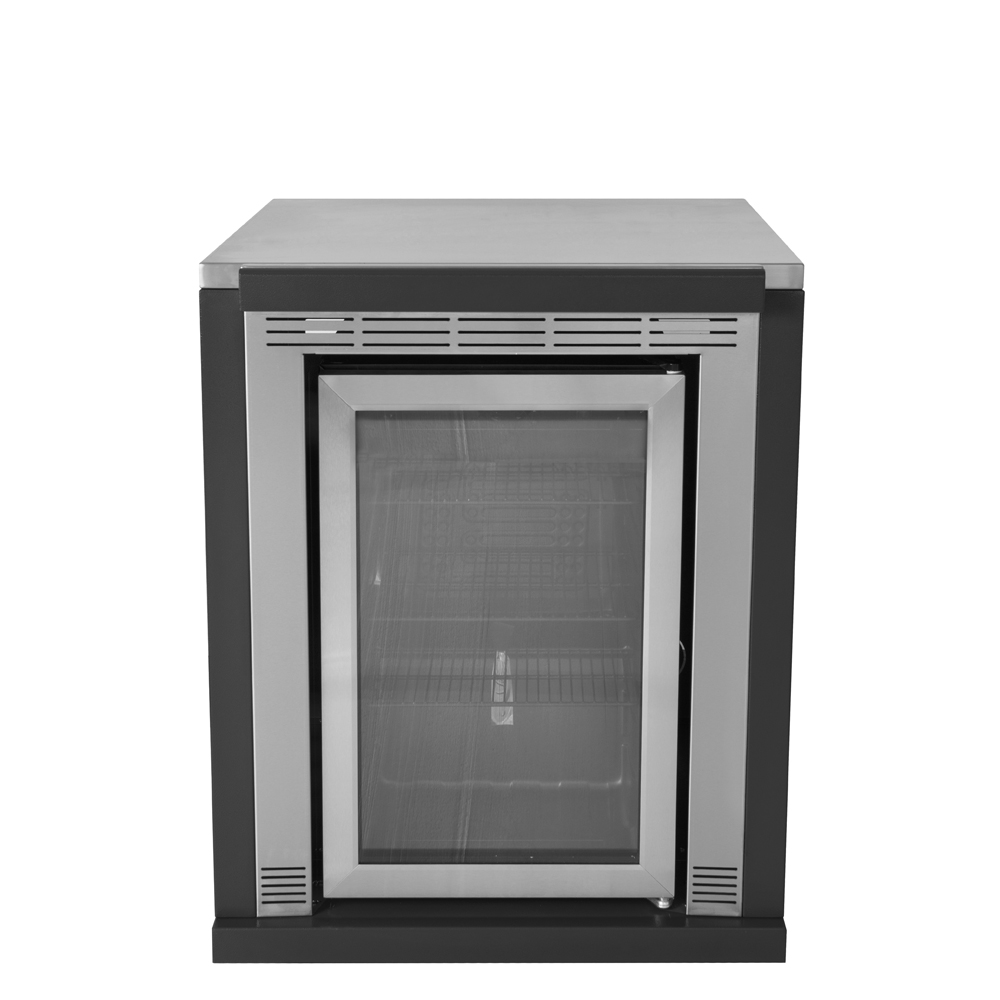 עמדת מקרר קולמן סדרת רבולושן. מקרר חוץ 70 ל' חזית שקופה. משטח עבודה מנירוסטה 304 איכותית.