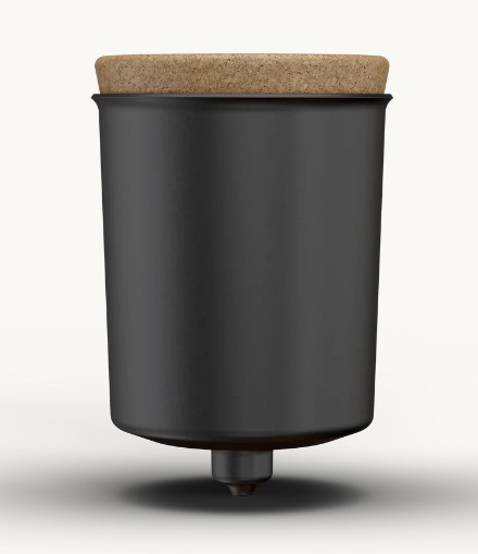משפך אלומיניום מצופה אנודייז שחור עם פקק שעם, מתוכנן כדי להזריק בדיוק את הכמות הנכונה של מים לטאבון וליצור אדים בכניסה.