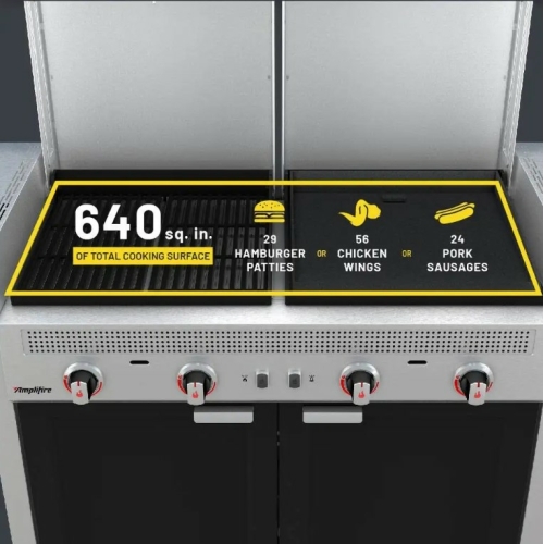 מערכת בישול בטכנולוגיית Amplifire לקבלת בשר עסיסי יותר ולמניעת ההתלקחויות.