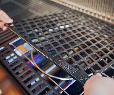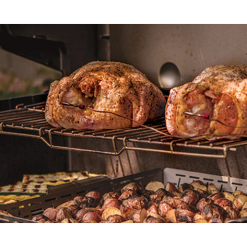 לגריל מבער צריבה טורבו עוצמתי ואזור צריבה גדול, רשת עליונה כפולה הניתנת להרחבה.