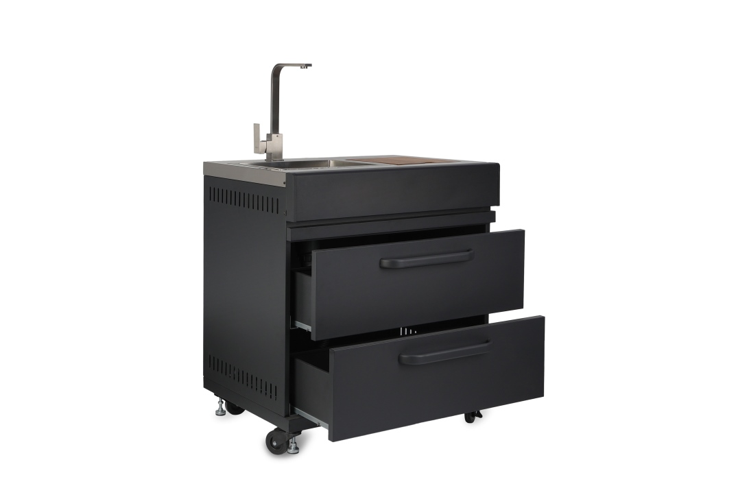 - יחידת כיור הכוללת מגירות אחסון + ברז + כיור + משטח עליון לאחסון קרח ובוצ'ר עליון ( אורך 80 / עומק 63.5 / גובה 88.5 ) ס"מ.