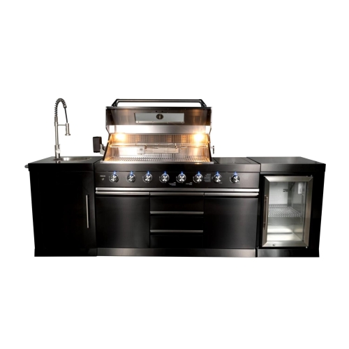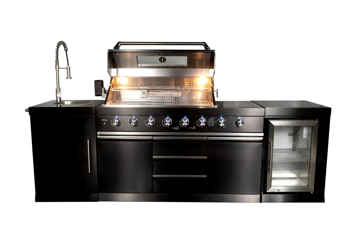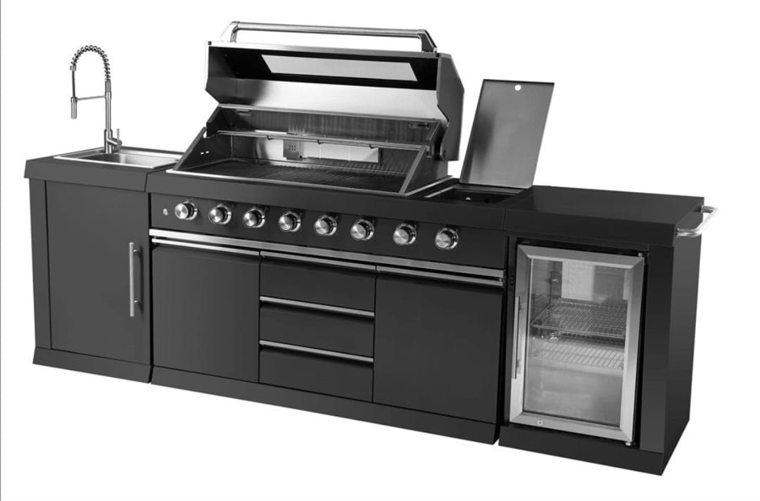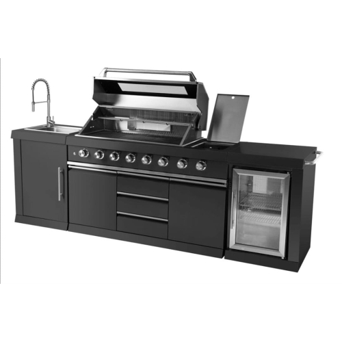 מטבח חוץ פרימיום מנירוסטה 201 מושחרת , יחידת מקרר 68 ליטר מנירוסטה