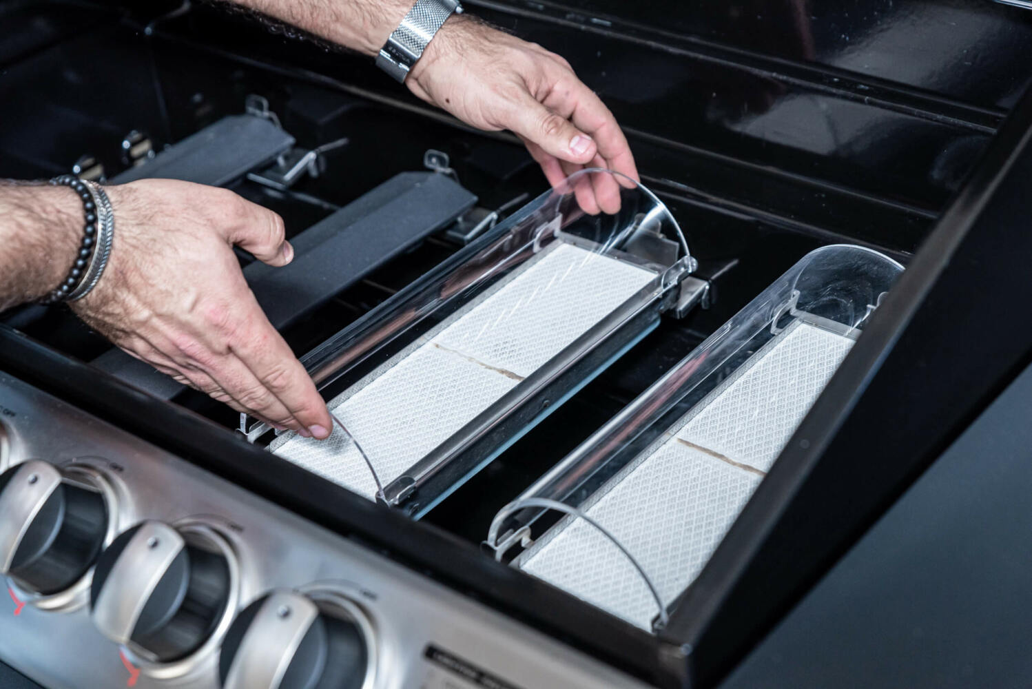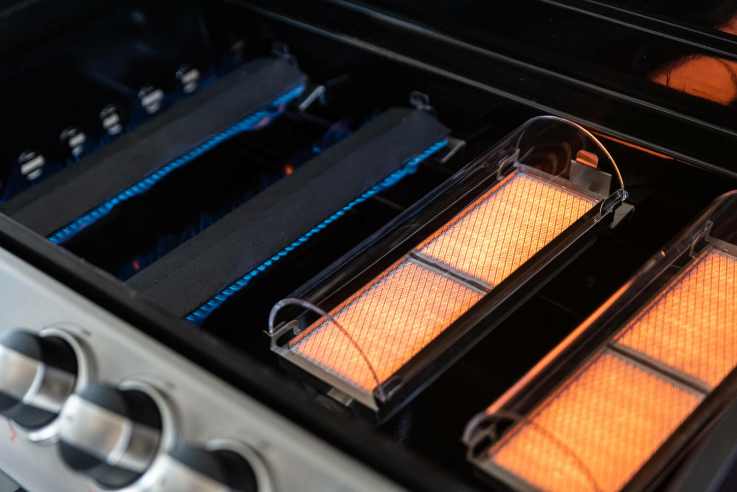 מעל מבערי Infra Red קיימת זכוכית קוורץ נשלפת (עמידה לשטיפה במדיח) המשמשת כמגן להבה לצמצום תופעת התפרצות הלהבות .