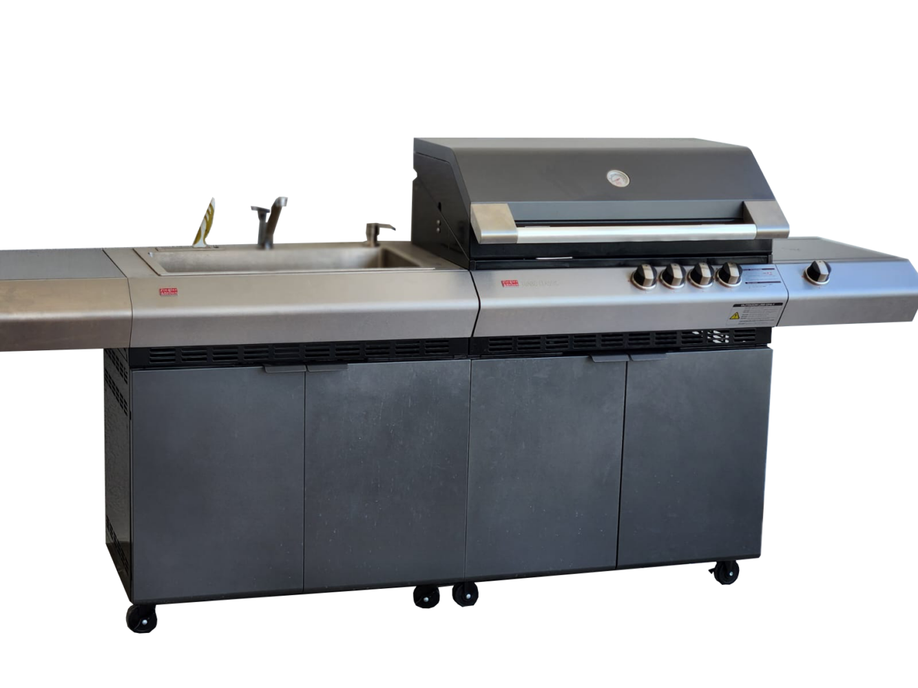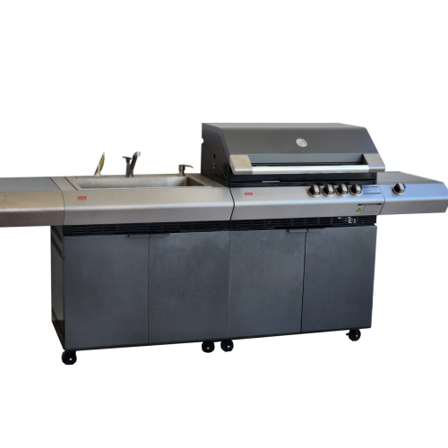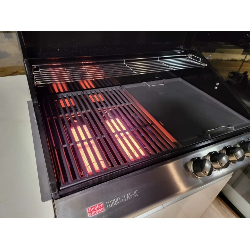 במטבח זה הגריל העוצמתי – Turbo Classic עם 4 מבערים 2 מבערי Infra Red ועוד 2 מבערי יציקת ברזל (מתחת לפלאנצ'ה) שמספקים יחד 60,660 BTU לקבלת תוצאות צלייה מושלמות לכל סוגי הבשרים.