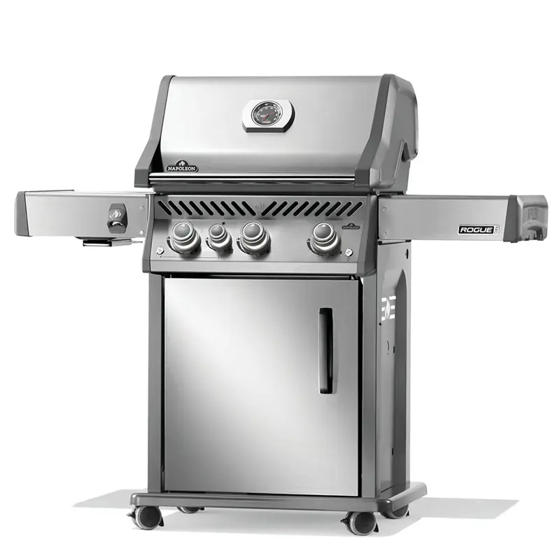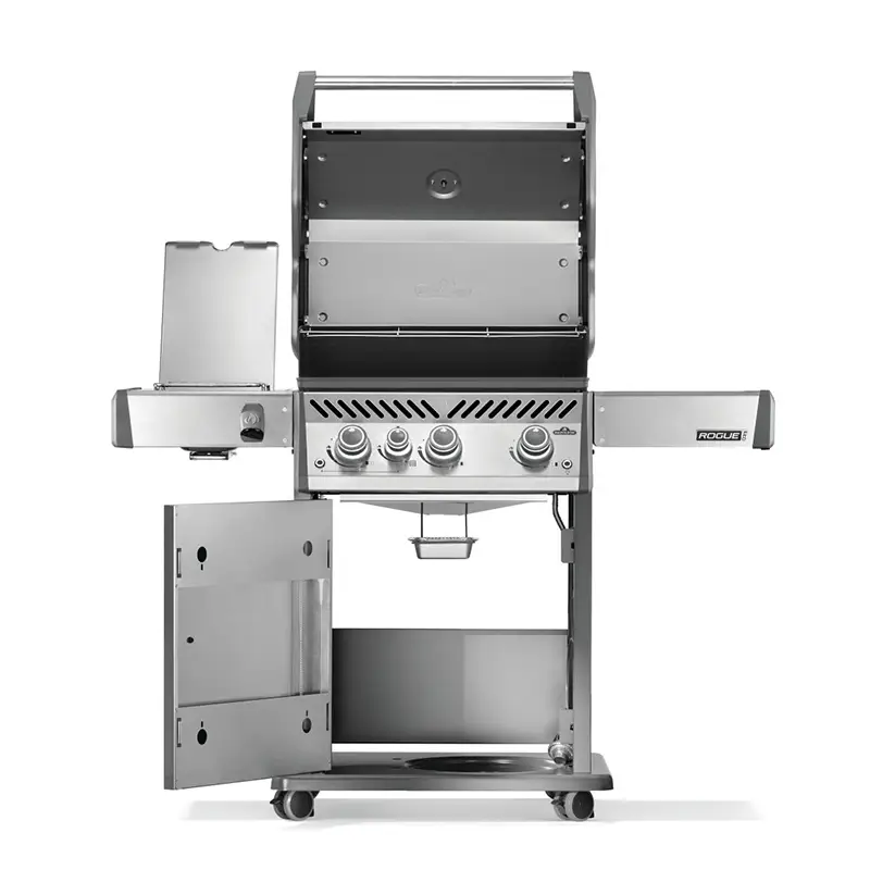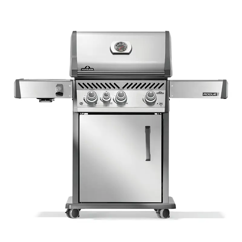 נפוליאון רוג Napoleon Rogue Pro 425, גריל גז נפוליאון רוג 425 של הענקית הקנדית מתאפיין בתיבה מיציקת אלומיניום הידועה בזכות עמידותה לאורך שנים רבות, אשר שומרת חום לזמן רב ובכך מיעלת את פעילות מבערי הנירוסטה גם לבשר שדורש להבה נמוכה.