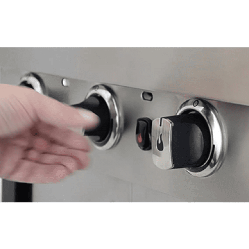 הגריל בעל 4 מבערי נירוסטה איכותיים , 3 משטחי TRU INFRA RED מנירוסטה ומעליהם 3 רשתות ברזל יצוק לצריבה איכותית ומרשימה לבשר.