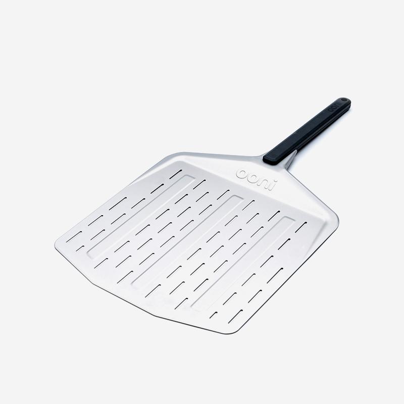 בנוי לאפיית פיצות ברוחב 30 ס"מ, מגש האלומיניום המחורר של Ooni 12 הוא בעל איכות גבוהה, קל לאחיזה, החלקה, הפיכה והוצאת הפיצה מהטאבון.